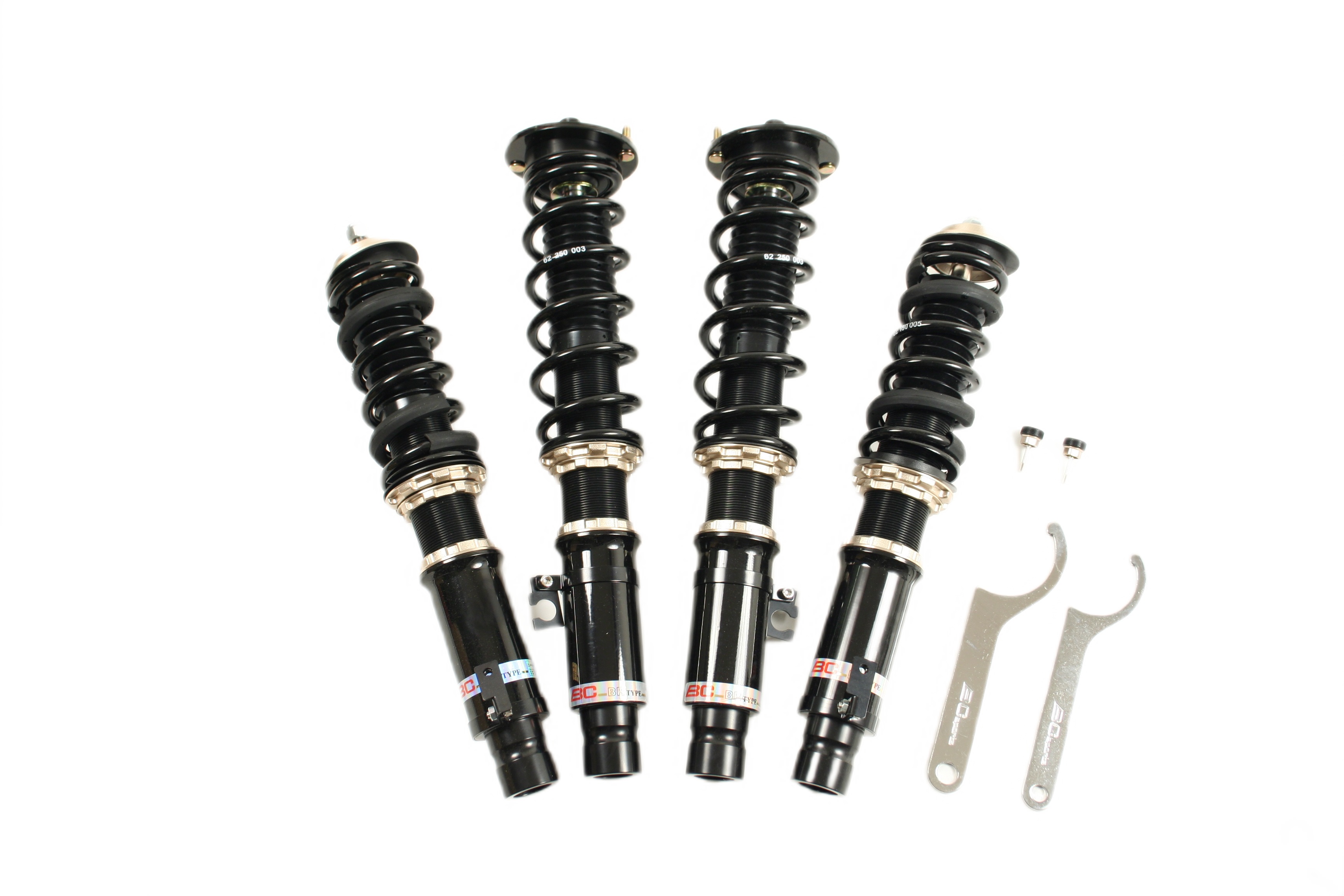 Zestaw zawieszenia BC Racing BR Series oferuje najbardziej przystępne cenowo zawieszenie gwintowane z dużymi możliwościami regulacji. Amortyzator jednorurowy o możliwie dużej pojemności oleju z tłokiem o średnicy 46mm zapewnia liniowe tłumienie, przez co samochód prowadzi się pewnie i komfortowo. Jest to możliwe  dzięki wieloletniemu doświadczeniu firmy BC Racing oraz wielu testom każdego podzespołu i udoskonalaniu charakterystyki zawieszenia, aby zapewnić najbardziej zrównoważone i przystępne cenowo zawieszenie na rynku. Możliwość pełnej regulacji Konstrukcja amortyzatora jednorurowego Liniowy skok i krzywa tłumienia Regulacja wysokości niezależna od kompresji sprężyny 30 regulacji tłumienia/odbicia Przednie regulowane uchwyty camberplate * Tylne Regulowane uchwyty camberplate * Możliwa zamiana na sprężyny o innej charakterystyce lub sprężyny typu Swift Gwarancja 12 miesięcy Dzięki skrupulatnie dobranym wartościom sprężyn, zaworom amortyzatorów i jednemu z najszerszych zakresów regulacji w branży, jest to najlepszy wybór zawieszenia do twojego samochodu. *Jeśli konstrukcja zawieszenia pozwala na zastosowanie uchwytów camberplate
