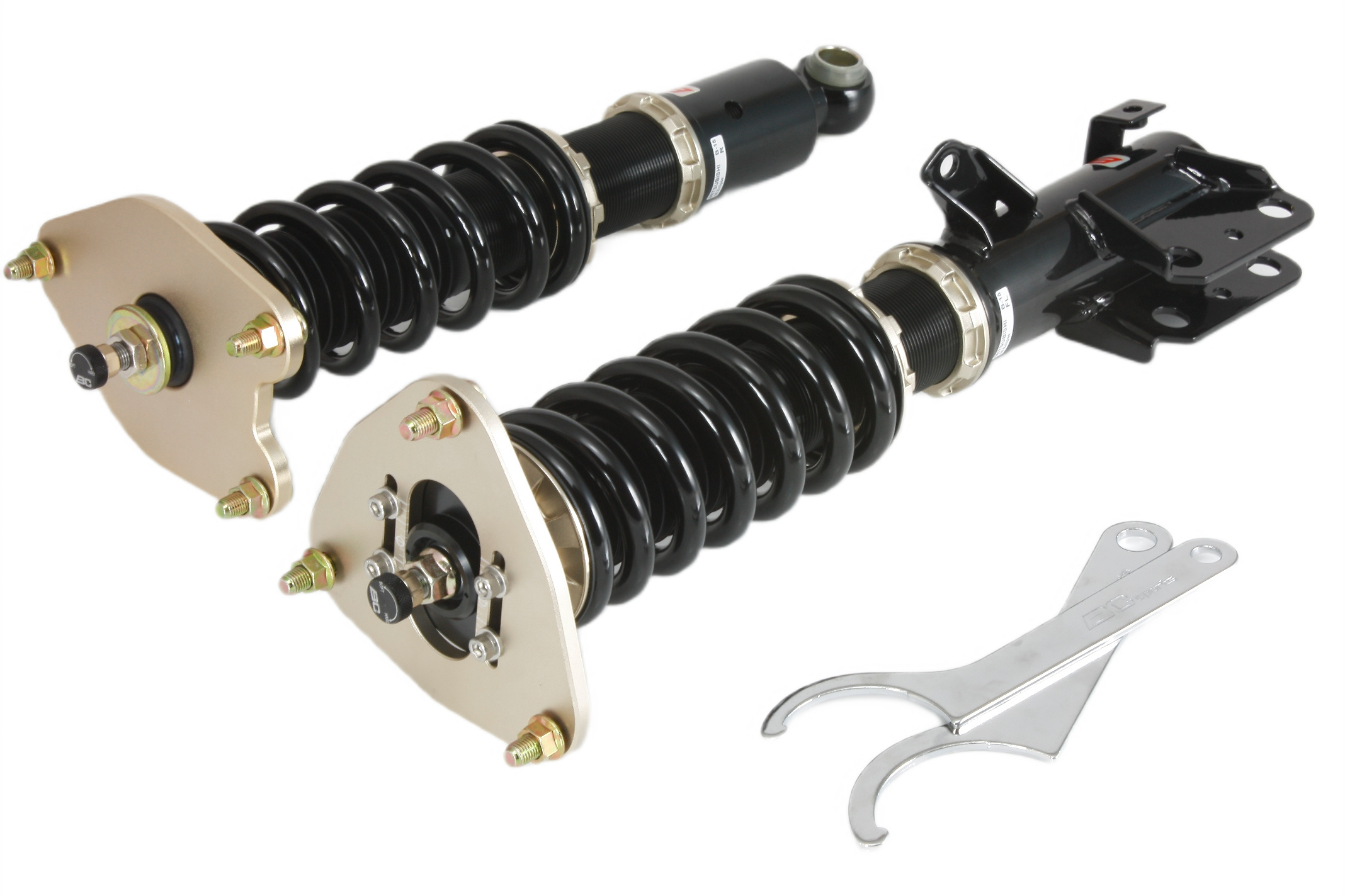 Zestaw zawieszenia BC Racing BR Series oferuje najbardziej przystępne cenowo zawieszenie gwintowane z dużymi możliwościami regulacji. Amortyzator jednorurowy o możliwie dużej pojemności oleju z tłokiem o średnicy 46mm zapewnia liniowe tłumienie, przez co samochód prowadzi się pewnie i komfortowo. Jest to możliwe  dzięki wieloletniemu doświadczeniu firmy BC Racing oraz wielu testom każdego podzespołu i udoskonalaniu charakterystyki zawieszenia, aby zapewnić najbardziej zrównoważone i przystępne cenowo zawieszenie na rynku. Możliwość pełnej regulacji Konstrukcja amortyzatora jednorurowego Liniowy skok i krzywa tłumienia Regulacja wysokości niezależna od kompresji sprężyny 30 regulacji tłumienia/odbicia Przednie regulowane uchwyty camberplate * Tylne Regulowane uchwyty camberplate * Możliwa zamiana na sprężyny o innej charakterystyce lub sprężyny typu Swift Gwarancja 12 miesięcy Dzięki skrupulatnie dobranym wartościom sprężyn, zaworom amortyzatorów i jednemu z najszerszych zakresów regulacji w branży, jest to najlepszy wybór zawieszenia do twojego samochodu. *Jeśli konstrukcja zawieszenia pozwala na zastosowanie uchwytów camberplate