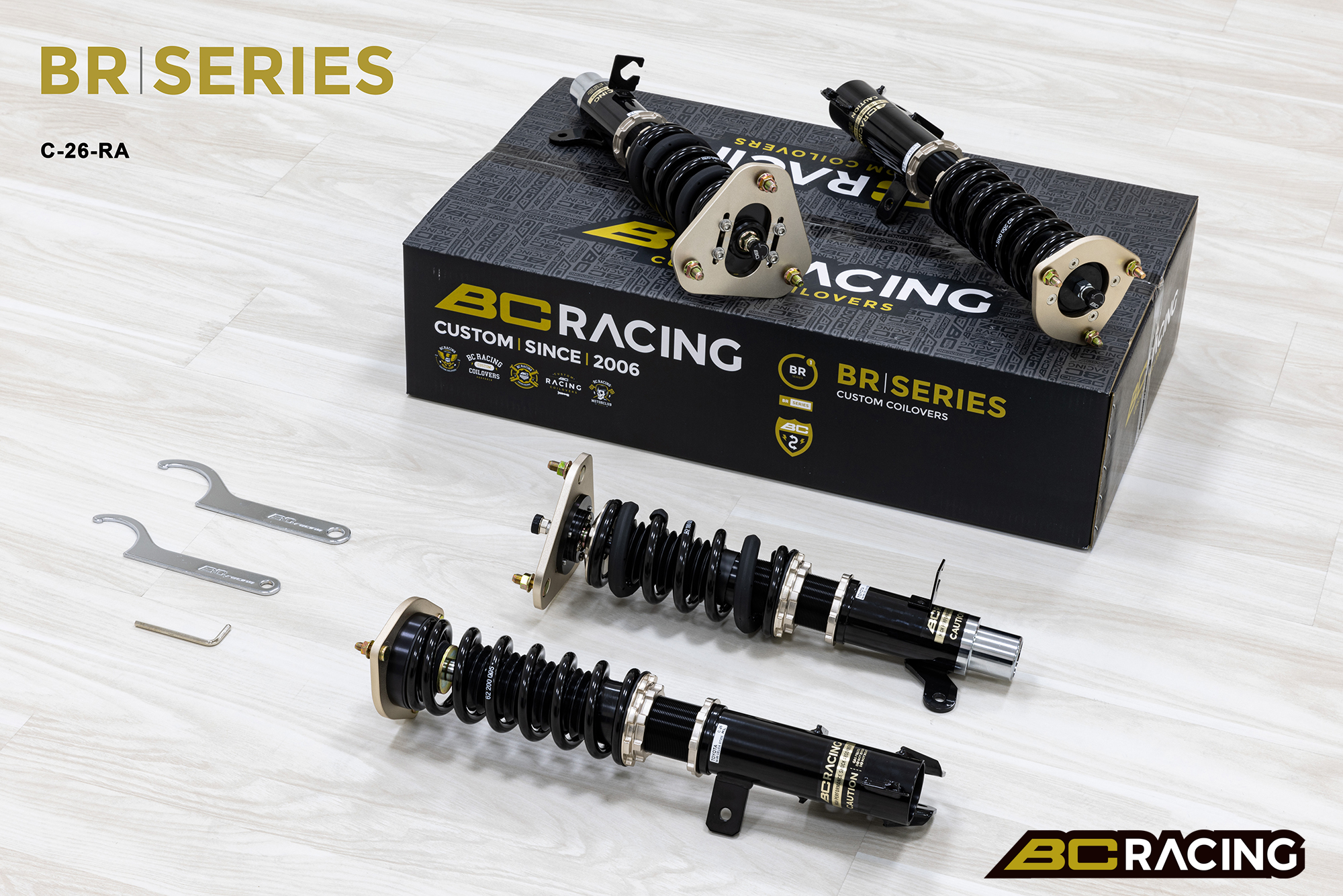 Zestaw zawieszenia BC Racing BR Series oferuje najbardziej przystępne cenowo zawieszenie gwintowane z dużymi możliwościami regulacji. Amortyzator jednorurowy o możliwie dużej pojemności oleju z tłokiem o średnicy 46mm zapewnia liniowe tłumienie, przez co samochód prowadzi się pewnie i komfortowo. Jest to możliwe  dzięki wieloletniemu doświadczeniu firmy BC Racing oraz wielu testom każdego podzespołu i udoskonalaniu charakterystyki zawieszenia, aby zapewnić najbardziej zrównoważone i przystępne cenowo zawieszenie na rynku. Możliwość pełnej regulacji Konstrukcja amortyzatora jednorurowego Liniowy skok i krzywa tłumienia Regulacja wysokości niezależna od kompresji sprężyny 30 regulacji tłumienia/odbicia Przednie regulowane uchwyty camberplate * Tylne Regulowane uchwyty camberplate * Możliwa zamiana na sprężyny o innej charakterystyce lub sprężyny typu Swift Gwarancja 12 miesięcy Dzięki skrupulatnie dobranym wartościom sprężyn, zaworom amortyzatorów i jednemu z najszerszych zakresów regulacji w branży, jest to najlepszy wybór zawieszenia do twojego samochodu. *Jeśli konstrukcja zawieszenia pozwala na zastosowanie uchwytów camberplate