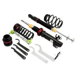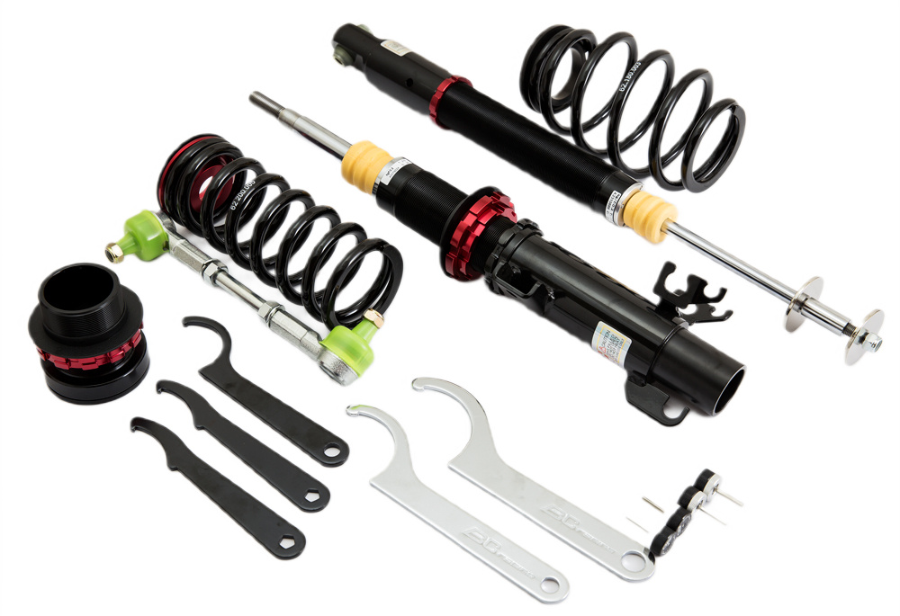 The V1 series coilovers use a large 44mm diameter piston in a 50mm diameter damper body to maximise oil capacity. As the damper unit opearates the oil contained within heats up. The viscosity of oil changes as its temperature varies which can lead to changes in the damping characteristic of the unit. BC Racing only use a very high quality oil with their coilovers but go that extra mile to maximise performance and build their V1 range with a large 50mm diameter damper body. This increases the capacity of the unit which increases the volume of oil contained which in turn reduces the peak temperature and so significantly improves damper performance. Key Features: Pillowball top mounts Bearing mounted upper spring platform 30 way adjustable damping Ride height adjustment separate to spring preload Camber adjustable top mounts (depending on model) Tapered bottom mount locking collar to prevent collar working loose Monotube damper design Custom spring rates available All spare parts available with low lead times Dust boot to protect the damper seal