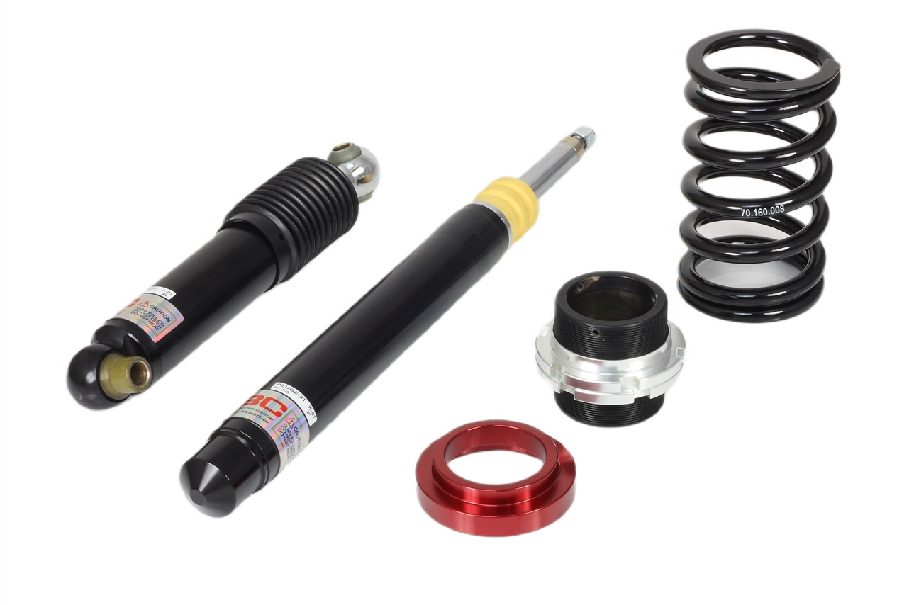 Gwintowane zawieszenia serii V1 wykorzystują duży tłok o średnicy 44 mm w korpusie amortyzatora o średnicy 50 mm, aby zmaksymalizować pojemność oleju. Gdy amortyzator pracuje, znajdujący się w nim olej się nagrzewa. Lepkość oleju zmienia się wraz z temperaturą, co może prowadzić do zmian charakterystyki tłumienia. BC Racing stosuje w swoich coiloverach olej bardzo wysokiej jakości, a ponadto, aby zmaksymalizować osiągi, buduje serię V1 z dużym korpusem amortyzatora o średnicy 50 mm. Zwiększa to pojemność układu, a tym samym ilość oleju, co obniża maksymalną temperaturę i znacząco poprawia działanie amortyzatora. Kluczowe cechy: Górne mocowania typu pillowball Górna podkładka sprężyny na łożysku 30-stopniowa regulacja tłumienia Regulacja wysokości jazdy niezależnie od wstępnego napięcia sprężyny Regulowane górne mocowania zbieżności (w zależności od modelu) Zbieżny pierścień blokujący dolnego mocowania zapobiegający luzowaniu Konstrukcja amortyzatora monotube Dostępne niestandardowe twardości sprężyn Wszystkie części zamienne dostępne z krótkim czasem realizacji Osłona przeciwpyłowa chroniąca uszczelnienie amortyzatora