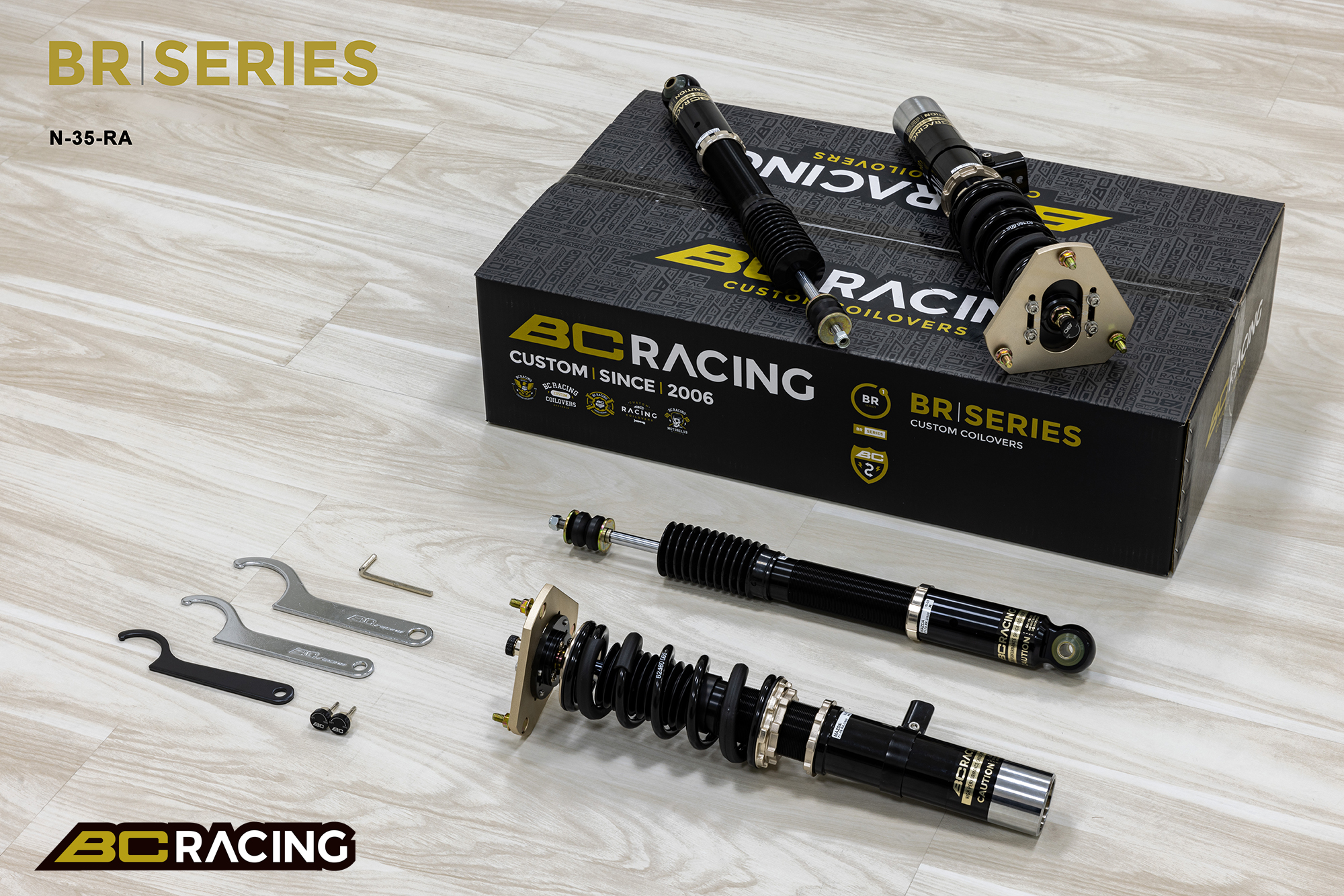 Zestaw zawieszenia BC Racing BR Series oferuje najbardziej przystępne cenowo zawieszenie gwintowane z dużymi możliwościami regulacji. Amortyzator jednorurowy o możliwie dużej pojemności oleju z tłokiem o średnicy 46mm zapewnia liniowe tłumienie, przez co samochód prowadzi się pewnie i komfortowo. Jest to możliwe  dzięki wieloletniemu doświadczeniu firmy BC Racing oraz wielu testom każdego podzespołu i udoskonalaniu charakterystyki zawieszenia, aby zapewnić najbardziej zrównoważone i przystępne cenowo zawieszenie na rynku. Możliwość pełnej regulacji Konstrukcja amortyzatora jednorurowego Liniowy skok i krzywa tłumienia Regulacja wysokości niezależna od kompresji sprężyny 30 regulacji tłumienia/odbicia Przednie regulowane uchwyty camberplate * Tylne Regulowane uchwyty camberplate * Możliwa zamiana na sprężyny o innej charakterystyce lub sprężyny typu Swift Gwarancja 12 miesięcy Dzięki skrupulatnie dobranym wartościom sprężyn, zaworom amortyzatorów i jednemu z najszerszych zakresów regulacji w branży, jest to najlepszy wybór zawieszenia do twojego samochodu. *Jeśli konstrukcja zawieszenia pozwala na zastosowanie uchwytów camberplate