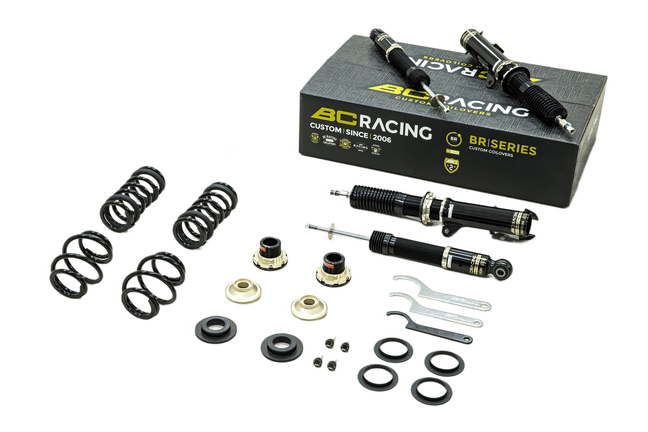 Zestaw zawieszenia BC Racing BR Series oferuje najbardziej przystępne cenowo zawieszenie gwintowane z dużymi możliwościami regulacji. Amortyzator jednorurowy o możliwie dużej pojemności oleju z tłokiem o średnicy 46mm zapewnia liniowe tłumienie, przez co samochód prowadzi się pewnie i komfortowo. Jest to możliwe  dzięki wieloletniemu doświadczeniu firmy BC Racing oraz wielu testom każdego podzespołu i udoskonalaniu charakterystyki zawieszenia, aby zapewnić najbardziej zrównoważone i przystępne cenowo zawieszenie na rynku. Możliwość pełnej regulacji Konstrukcja amortyzatora jednorurowego Liniowy skok i krzywa tłumienia Regulacja wysokości niezależna od kompresji sprężyny 30 regulacji tłumienia/odbicia Przednie regulowane uchwyty camberplate * Tylne Regulowane uchwyty camberplate * Możliwa zamiana na sprężyny o innej charakterystyce lub sprężyny typu Swift Gwarancja 12 miesięcy Dzięki skrupulatnie dobranym wartościom sprężyn, zaworom amortyzatorów i jednemu z najszerszych zakresów regulacji w branży, jest to najlepszy wybór zawieszenia do twojego samochodu. *Jeśli konstrukcja zawieszenia pozwala na zastosowanie uchwytów camberplate