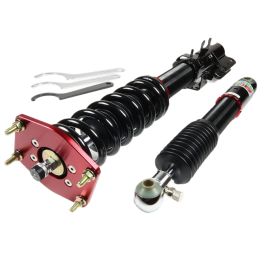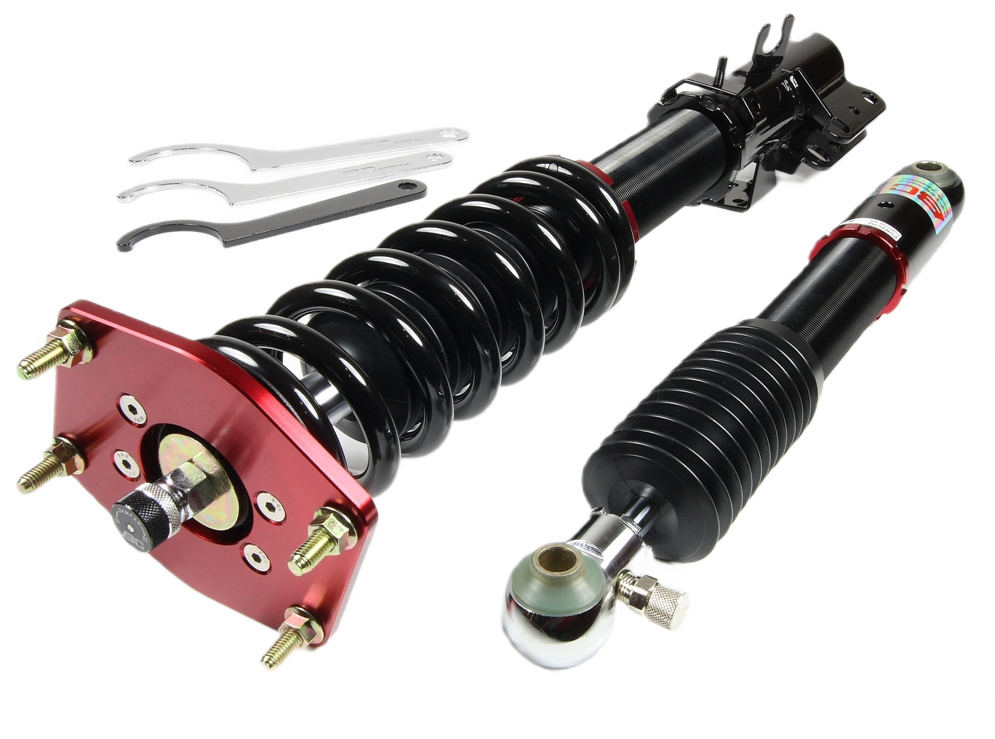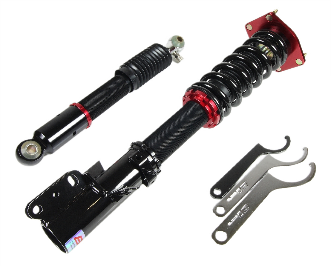 The V1 series coilovers use a large 44mm diameter piston in a 50mm diameter damper body to maximise oil capacity. As the damper unit opearates the oil contained within heats up. The viscosity of oil changes as its temperature varies which can lead to changes in the damping characteristic of the unit. BC Racing only use a very high quality oil with their coilovers but go that extra mile to maximise performance and build their V1 range with a large 50mm diameter damper body. This increases the capacity of the unit which increases the volume of oil contained which in turn reduces the peak temperature and so significantly improves damper performance. Key Features: Pillowball top mounts Bearing mounted upper spring platform 30 way adjustable damping Ride height adjustment separate to spring preload Camber adjustable top mounts (depending on model) Tapered bottom mount locking collar to prevent collar working loose Monotube damper design Custom spring rates available All spare parts available with low lead times Dust boot to protect the damper seal