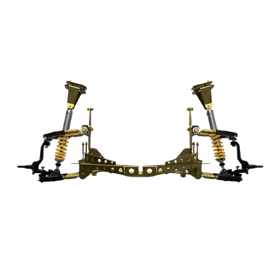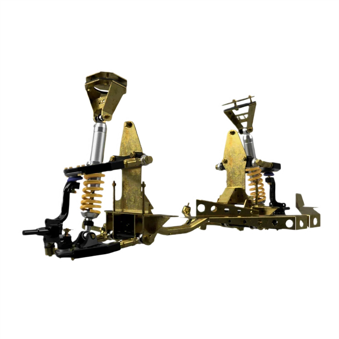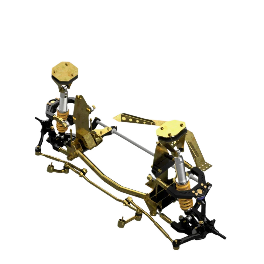 Zawieszenie wielowahaczowe eliminujące wszelkie niedoskonałości oryginalnego systemu użytego w samochodach Ford Mustang. Elementy zawieszenia zintegrowane są z mocowaniem dolnej rozpórki, co pozytywnie wpływa na rozkładanie sił na elementy zawieszenia i karoserii pojazdu. Regulowany wielowahaczowy system oparty na mocowaniach wykorzystujących amortyzatory Ohlins oraz uniballe umożliwia dokładne dostosowanie geometrii przedniego zawieszenia, tak aby uzyskać jak największą przyczepność przedniej osi pojazdu podczas pokonywania zakrętów. Wysoka wytrzymałość na uszkodzenia mechaniczne Możliwa dokładna regulacja geometrii Regulowana wysokość osadzenia karoserii Dodatkowa przestrzeń na customowe kolektory wydechowe Nasz produkt znacząco poprawia właściwości jezdne Twojego pojazdu. Zawieszenie wielowahaczowe jest technologicznie znacznie bardziej skuteczne niż oryginalny układ stosowany w tych modelach. Dzięki zastosowaniu śrub rzymskich możliwa jest regulacja długości dolnych i górnych wahaczy. Wahacze zostały wykonane metodą frezowania CNC z wysokiej jakości aluminium 7075, które cechuje się odpornością na korozję, doskonałą spawalnością i obrabialnością. Stop ten jest ceniony za swoją wytrzymałość i lekkość. Gwintowany zestaw amortyzatorów Ohlins pozwala na regulację wysokości pojazdu, co poprawia prowadzenie poprzez obniżenie środka ciężkości oraz pozytywnie wpływa na estetykę. Dodatkowo w zestawie znajduje się zaprojektowany przez nas drążek stabilizatora, który zwiększa sztywność i stabilność zawieszenia. Wykonany został z wysokiej jakości stali sprężystej 50HS, a jego ramiona frezowane są z aluminium 7075. Mocowania wykonano z aluminium 2017A. Nasz customowy drążek stabilizatora redukuje przechyły karoserii, dopełniając usprawnienie całego układu zawieszenia. Cechy produktu Regulowany System Zawieszenia przedniego Zawieszenie oparte na amortyzatorach Ohlins Regulowana wysokość i wartość tłumienia Znacząca poprawa kontroli nad pojazdem Zestaw zawiera Komplet wahaczy frezowanych (4 szt.) Mocowania górne amortyzatorów z tulejami (2 szt.) Amortyzatory Ohlins (2 szt.) Komplet uniballi (8 szt.) Komplet śrub rzymskich do regulacji wahaczy (8 szt.) Komplet sworzni wahaczy (górne i dolne) (4 szt.) Mocowania dolnych wahaczy integrujące cały układ z kielichami oraz dolną rozpórką (2 szt.) Mocowania górnych wahaczy Shelby Drop (2 szt.) Wzmocniona rozpórka dolna Stabilizator przedni Zestaw montażowy Zastosowanie Ten produkt będzie pasować do następujących roczników Ford Mustang: 1965 Fastback, Coupe, Convertible 1966 Fastback, Coupe, Convertible 1967 Fastback, Coupe, Convertible 1968 Fastback, Coupe, Convertible Uwagi *Użycie danego systemu zawieszenia wymaga modyfikacji mocowań dolnych wahaczy **Brak przednich zwrotnic w zestawie ***Montaż zawieszenia wymaga ingerencji w karoserię