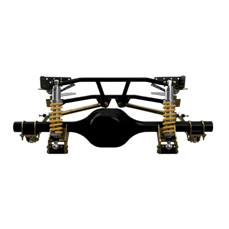 Autorskie zawieszenie tylnego mostu eliminuje wady oryginalnego systemu opartego na resorach. Wykorzystuje regulowane wahacze wleczone i ukośne oraz amortyzatory Ohlins STX S46DR1 z regulacją naprężenia i dobicia. Zestaw mocowany jest czteropunktowo do karoserii przez specjalną subramę, która również służy jako mocowanie wahaczy ukośnych. Zawieszenie zawiera gwintowane amortyzatory z wielopoziomową regulacją tłumienia oraz wahacze wleczone i wahacze ukośne, co umożliwia dostosowanie wysokości jazdy i geometrii zawieszenia. Dolne mocowania amortyzatorów mają kilka opcji wysokości w otworach montażowych. Całość opiera się na wzmocnionych połączeniach uniball. Regulowany wysokość i wartość tłumienia Zawieszenie oparte na amortyzatorach Ohlins Regulowana długość wahaczy Znacząca poprawa kontroli nad pojazdem Produkt wykonany jest z wysokiej gatunkowo stali konstrukcyjnej (subrama ze stali S355, a wahacze ze stali S355) oraz wysokiej klasy elementów takich jak amortyzatory czy elementy ruchome. Zastosowanie naszego systemu zawieszenia w Twoim pojeździe znacząco poprawi stabilność pojazdu podczas dynamicznej jazdy. Posiada również pozytywny wpływ na wybieranie nierówności powierzchni jezdni dzięki możliwej regulacji twardości amortyzatorów. Regulowana długość elementów umożliwi dostosowanie geometrii zawieszenia do Twojego stylu jazdy, tak aby pojazd był zawsze przewidywalny i dostarczał jak najwięcej pozytywnych wrażeń podczas jego użytkowania. Cechy produktu Regulowany system zawieszenia tylnego typu Coilover/4-link Ohlins Regulowane górne ramiona kontrolne Znacząca poprawa jakości prowadzenia Zestaw zawiera Rurowa subrama zawieszenia z mocowaniami do podwozia Wahacze poprzeczne (2 szt.) Wahacze wleczone (2 szt.) Amortyzatory Ohlins STX S46DR1 (2 szt.) Komplet mocowań wahaczy ukośnych (do subramy i mostu) Komplet mocowań wahaczy wleczonych z montażem na cybanty do mostu Dolne mocowanie amortyzatora z tulejami (2 szt.) Zestaw montażowy Komplet uniballi (8 szt.) Zastosowanie Ten produkt będzie pasował do następujących roczników pojazdów Ford Mustang: Ford Mustang Fastback 1964.5–1966 Ford Mustang Fastback 1967–1968 Ford Mustang Coupe 1964.5–1966 Ford Mustang Coupe 1967–1968 Ford Mustang Convertible 1964.5–1966 Ford Mustang Convertible 1967–1968 Uwagi Użycie danego systemu zawieszenia wymaga modyfikacji mocowań mostu napędowego oraz mocowań subramy do karoserii. Zestaw całkowicie eliminuje możliwość zamontowania oryginalnych elementów zawieszenia. Po zamontowaniu należy dokonać korekcji geometrii zawieszenia.