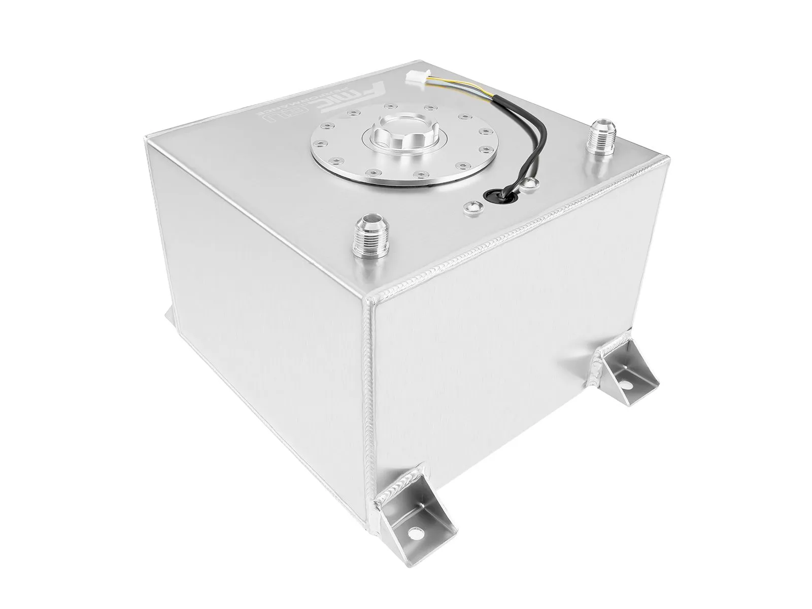 Zbiornik Paliwa FMIC.EU 40L z czujnikiem poziomu paliwa Zbiornik paliwa FMIC.EU o pojemności 40litrów to wysokiej jakości, lekka i wytrzymała konstrukcja przeznaczona do zastosowań sportowych, torowych oraz tuningu. Wykonany w całości z aluminium, charakteryzuje się niską masą własną 5,5kg.Korpus zbiornika powstał z myślą o motorsporcie – całość jest precyzyjnie spawana metodą TIG, co zapewnia wysoką szczelność, trwałość i odporność na drgania oraz ciśnienie.Zbiornik został wyposażony w cztery króćce AN10, co pozwala na swobodną konfigurację układu paliwowego, montaż pomp, powrotów oraz odpowietrzenia. Zastosowany wysokiej jakości aluminiowy korek wlewu, gwarantujący precyzyjne i szczelne zamknięcie oraz trwałość nawet przy intensywnym użytkowaniu.Ze względu na bardzo niską masę oraz solidną konstrukcję, zbiornik jest szczególnie polecany do samochodów wykorzystywanych w drifcie, KJS, wyścigach 1/4 mili, a także w autach sportowych i streetowych.W przypadku jazdy torowej, gdzie występują wysokie przeciążenia boczne, zaleca się stosowanie zbiornika w połączeniu ze swirl pot’em, aby zapewnić stabilne zasilanie paliwem. -Lekka konstrukcja – tylko 5,5kg-Wbudowany czujnik poziomu paliwa-W pełni aluminiowy korpus spawany metodą TIG-Cztery króćce AN10-Aluminiowy korek wlewu – trwały i precyzyjny mechanizm zamykający-Wysoka odporność na temperaturę, ciśnienie i warunki torowe-Idealny do driftu, KJS, 1/4 mili oraz samochodów streetowych-Możliwość współpracy ze swirl pot’em Specyfikacja techniczna:-Wymiary: 42x42x23cm-Pojemność: 40litrów-Materiał: aluminium-Masa własna: 5,5kg-Liczba króćców: 4-Gwint króćców: AN10-Aluminiowy korek wlewu-precyzyjne spawy TIG-Konstrukcja przystosowana do motorsportu
