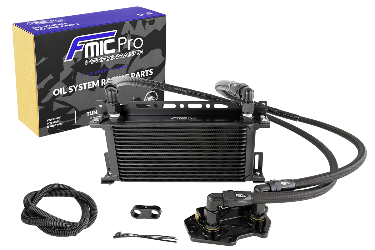 Zestaw chłodnicy oleju silnikowego FMIC.Pro 2.0T B48TU do BMW G20 G29 F39 F40 2018-2024 Zestaw chłodnicy oleju FMIC.Pro został zaprojektowany dla silników 2.0T B48TU do BMW G20 G29 F39 F40 2018-2024. Jego zadaniem jest poprawa chłodzenia oleju silnikowego, co pozwala utrzymać stabilną temperaturę pracy silnika i zwiększa trwałość jednostki napędowej, zwłaszcza przy dużym obciążeniu. Zalety zestawu Efektywne chłodzenie - 14-rzędowa chłodnica obniża temperaturę oleju podczas intensywnej jazdy. Precyzyjna obróbka elementów – adapter filtra oleju wykonany z aluminium w technologii CNC i anodyzowany na czarno. Pełen komplet montażowy - wszystkie niezbędne elementy do instalacji w samochodzie, bez potrzeby dodatkowych części. Zawartość zestawu Adapter / podstawka filtra oleju z aluminium, CNC, anodyzowana na czarno Węże gumowe w oplocie stalowym z końcówkami AN8 z termoizolacją Uchwyty montażowe Chłodnica oleju 14-rzędowa Zastosowanie Zestaw przeznaczony jest dla kierowców, którzy chcą zwiększyć niezawodność układu smarowania i utrzymać odpowiednią temperaturę oleju w każdych warunkach – zarówno podczas codziennej jazdy, jak i w czasie jazdy torowej. Dedykowany do silnika 2.0T B48TU BMW 118i F40 B48A20 / B48TU1 2019-2024 BMW 120i F40 B48A20 / B48TU1 2019-2024 BMW 128ti F40 B48A20O2 2020-2024 BMW M135i xDrive F40 B48A20T1 2019-2024 BMW X2 F39 sDrive20i xDrive20i B48A20 / B48TU1 2018-2024 BMW Z4 G29 sDrive20i B48A20 / B48TU1 2019-2024 BMW Z4 G29 sDrive30i B48B20 / B48TU1 2019-2024 BMW 320i G20 B48A20 / B48TU1 2019-2024 BMW 320i xDrive G20 B48A20 / B48TU1 2019-2024 BMW 330i G20 B48B20 / B48TU1 2019-2024