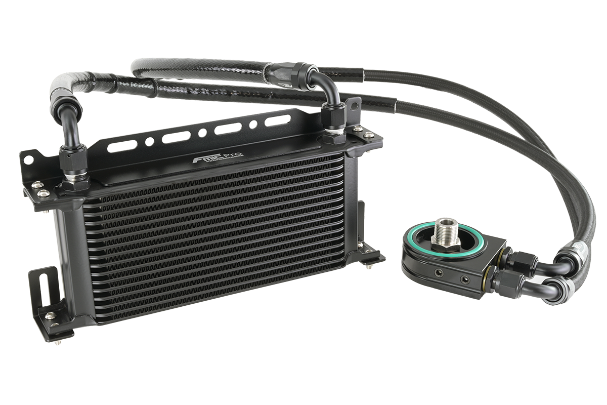 Zestaw chłodnicy oleju silnikowego FMIC.Pro Ford Mustang 2.3T Zestaw chłodnicy oleju FMIC.Pro to kompletny, wysokowydajny system chłodzenia przeznaczony do silników 2.3 Turbo stosowanych w Ford Mustang EcoBoost. Został opracowany z myślą o motorsporcie, tuningu i zastosowaniach torowych, gdzie kluczowe jest utrzymanie optymalnej temperatury oleju i stabilnego ciśnienia w układzie smarowania nawet w warunkach dużego obciążenia termicznego. Korpus adaptera wykonano z aluminium 6061-T6, precyzyjnie obrabianego w technologii CNC, co zapewnia idealne dopasowanie, wysoką wytrzymałość mechaniczną i odporność na ciśnienie. Powierzchnia została pokryta twardą powłoką anodową, odporną na działanie olejów, paliw i wysokich temperatur, co gwarantuje długą trwałość w ekstremalnych warunkach eksploatacji. Zastosowana chłodnica oleju FMIC.Pro charakteryzuje się dużą powierzchnią wymiany ciepła, co skutecznie obniża temperaturę roboczą oleju i wydłuża żywotność silnika. Adapter wyposażono w dwa wyjścia olejowe AN8 do podłączenia chłodnicy oraz dwa porty 1/8 NPT umożliwiające montaż czujników temperatury i ciśnienia oleju. Zestaw zawiera wszystkie niezbędne elementy do montażu – przewody w stalowym oplocie, nyple AN8, uchwyty montażowe oraz komplet uszczelek metalowo-gumowych. • Kompletny zestaw chłodzenia oleju – adapter, chłodnica, przewody i akcesoria montażowe • Dwa przyłącza AN8 do podłączenia przewodów olejowych • Dwa porty 1/8 NPT do montażu czujników temperatury i ciśnienia oleju • Adapter wykonany z aluminium 6061-T6 obrabianego precyzyjnie w technologii CNC • Twarda powłoka anodowa odporna na oleje, paliwa i wysoką temperaturę • Wysoka odporność mechaniczna i termiczna w warunkach torowych • Chłodnica o dużej powierzchni wymiany ciepła zapewniająca wysoką efektywność chłodzenia • Przewody olejowe w stalowym oplocie odporne na ciśnienie i temperaturę • Nyple AN8 oraz uszczelki metalowo-gumowe w zestawie • Maksymalne ciśnienie robocze: 12 bar • Zakres temperatury pracy: od -40°C do +180°C • Przeznaczony do motorsportu, tuningu oraz jednostek o zwiększonej mocy i obciążeniu cieplnym Zawartość zestawu • Adapter chłodnicy oleju FMIC.Pro z portami 1/8 NPT • Chłodnica oleju FMIC.Pro • Dwa króćce AN8 • Przewody olejowe w stalowym oplocie • Uszczelki metalowo-gumowe • Uchwyty montażowe chłodnicy • Komplet śrub montażowych Dedykowany do: FordMustang 2.3 EcoBoost 2015–2024 Cadillac ATS 2.3 Turbo 2013–2019 CT5 2.3 Turbo 2019–2024 XT5 2.3 Turbo 2016–2024
