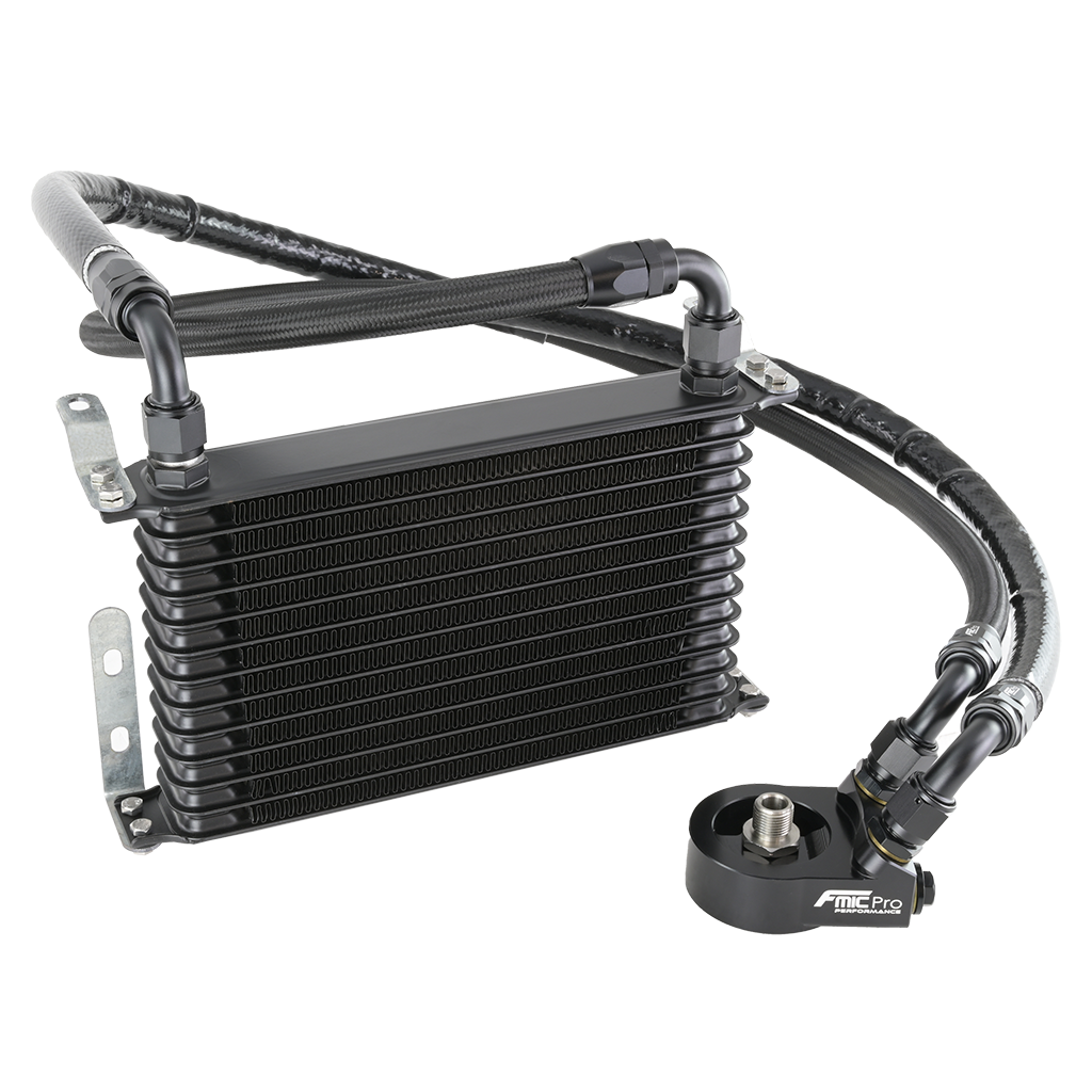 Zestaw chłodnicy oleju silnikowego FMIC.Pro Toyota 1JZ 2JZ Zestaw chłodnicy oleju FMIC.Pro to kompletny, wysokowydajny system chłodzenia oleju silnikowego, zaprojektowany specjalnie dla silników Toyota 1JZ i 2JZ stosowanych m.in. w modelach Supra, Chaser, Lexus. Zaprojektowany z myślą o motorsporcie, tuningu i jednostkach o zwiększonej mocy, zapewnia stabilną temperaturę oleju oraz niezawodne smarowanie nawet w ekstremalnych warunkach torowych lub driftowych. Adapter wykonany jest z aluminium 6061-T6, obrabianego precyzyjnie w technologii CNC, co gwarantuje idealne dopasowanie, wysoką odporność na ciśnienie oraz długą żywotność. Powierzchnia została pokryta twardą powłoką anodową odporną na działanie olejów, paliw i wysokich temperatur, co zapewnia odporność na zużycie i korozję. W zestawie znajduje się 13-rzędowa chłodnica oleju FMIC.Pro o dużej powierzchni wymiany ciepła, która skutecznie redukuje temperaturę roboczą oleju i poprawia trwałość silnika. Adapter wyposażony jest w dwa wyjścia AN8 do podłączenia przewodów olejowych oraz dwa porty 1/8 NPT umożliwiające montaż czujników ciśnienia i temperatury oleju. Zestaw zawiera wszystkie niezbędne elementy montażowe – przewody w stalowym oplocie, króćce AN8, uchwyty chłodnicy oraz komplet uszczelek metalowo-gumowych. Kompletny zestaw chłodzenia oleju - adapter, chłodnica, przewody i akcesoria montażowe 14-rzędowa chłodnica oleju FMIC.Pro o wysokiej efektywności Dwa przyłącza AN8 do podłączenia przewodów olejowych Dwa porty 1/8 NPT do montażu czujników ciśnienia i temperatury oleju Adapter wykonany z aluminium 6061-T6 obrabianego precyzyjnie w technologii CNC Twarda powłoka anodowa odporna na oleje, paliwa i wysoką temperaturę Przewody olejowe w stalowym oplocie odporne na wysokie ciśnienie i temperaturę Wysoka odporność mechaniczna i termiczna w warunkach sportowych i torowych Maksymalne ciśnienie robocze: 12 bar Zakres temperatury pracy: od -40°C do +180°C Przeznaczony do motorsportu, tuningu oraz silników o zwiększonej mocy Zawartość zestawu Adapter chłodnicy oleju FMIC.Pro 14-rzędowa chłodnica oleju FMIC.Pro Dwa króćce AN8 Gniazda czujników 1/8 NPT Przewody olejowe w stalowym oplocie Metalowo-gumowe uszczelki Uchwyty montażowe chłodnicy Komplet śrub montażowych Dedykowany do: Toyota 1JZ-GE 2.5 Toyota 1JZ-GTE 2.5 Toyota 2JZ-GE 3.0 Toyota 2JZ-GTE 3.0