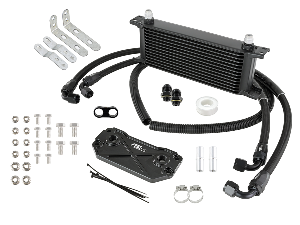 Zestaw chłodnicy oleju silnikowego FMIC.Pro Volvo 1.5T 2.0T 2014–2022 Zestaw chłodnicy oleju FMIC.Pro został zaprojektowany dla silników Volvo 1.5 i 2.0 T3, T4, T5, T6 Volvo V40, S60, V60, S90, V90, XC40, XC60, XC90 Jego zadaniem jest poprawa chłodzenia oleju silnikowego, co pozwala utrzymać stabilną temperaturę pracy silnika i zwiększa trwałość jednostki napędowej, zwłaszcza przy dużym obciążeniu. Zalety zestawu Efektywne chłodzenie – 14-rzędowa chłodnica obniża temperaturę oleju podczas intensywnej jazdy. Precyzyjna obróbka elementów – adapter filtra oleju wykonany z aluminium w technologii CNC i anodyzowany na czarno. Pełen komplet montażowy – wszystkie niezbędne elementy do instalacji w samochodzie, bez potrzeby dodatkowych części. Zawartość zestawu Adapter / podstawka filtra oleju z aluminium, CNC, anodyzowana na czarno Węże teflonowe w oplocie stalowym z końcówkami AN8 Uchwyty montażowe Chłodnica oleju 14-rzędowa Zastosowanie Zestaw przeznaczony jest dla kierowców, którzy chcą zwiększyć niezawodność układu smarowania i utrzymać odpowiednią temperaturę oleju w każdych warunkach – zarówno podczas codziennej jazdy, jak i w czasie jazdy torowej.