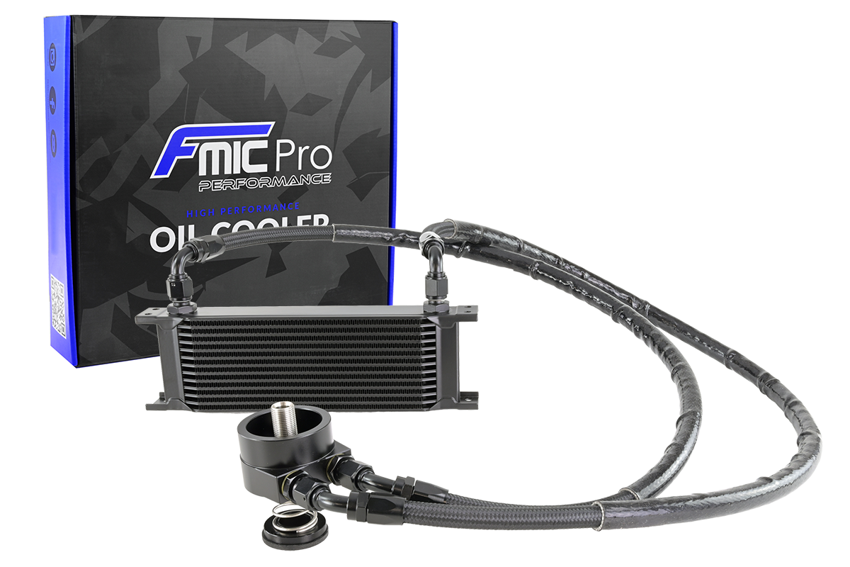 Zestaw Chłodnicy Oleju Silnikowego FMIC.Pro VW Golf MK5 MK6 Audi A3 1.2 1.4 TSI EA111 2005-2015 Zestaw chłodnicy oleju FMIC.Pro przeznaczony jest do silników 1.2TSI 1.4TSI EA111 stosowanych w modelach VW Golf MK5 MK6 Audi A3 Skoda Fabia II. Jego głównym zadaniem jest skuteczne obniżenie temperatury oleju silnikowego, co poprawia warunki pracy jednostki i zwiększa jej żywotność. Zalety zestawu:-Efektywne chłodzenie – 13-rzędowa chłodnica oleju obniża temperaturę nawet przy intensywnej jeździe. -Precyzyjna obróbka – adapter filtra oleju z aluminium CNC, anodyzowany na czarno. -Kompletny zestaw – wszystkie elementy niezbędne do montażu. Zawartość zestawu:-Adapter / podstawka filtra oleju z aluminium CNC, czarny anodowany -Węże teflonowe w oplocie stalowym z końcówkami AN8 -Uchwyty montażowe -Chłodnica oleju 13-rzędowa Zastosowanie:Zestaw polecany dla kierowców, którzy chcą zwiększyć niezawodność układu smarowania i utrzymać optymalną temperaturę oleju – zarówno w codziennej jeździe, jak i na torze. Dedykowany do: silników 1.2 TSI / 1.4 TSI EA111 -Volkswagen Golf V / VI, Polo V, Jetta V VI, Scirocco, Touran I, Passat B6, Beetle 2005–2014-Audi A1 (8X), A3 (8P) 2007–2015-Škoda Octavia II, Fabia II, Roomster, Rapid 2007–2015-SEAT Leon II, Ibiza IV, Altea, Toledo 2006–2015