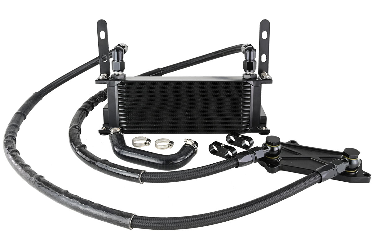 Zestaw chłodnicy oleju skrzyni biegów FMIC.Pro do DSG DQ500 (14-rzędowa, AN8) Zestaw chłodnicy oleju skrzyni biegów FMIC.Pro został zaprojektowany dla skrzyń DSG DQ500, które montowane są w samochodach Audi, Volkswagen oraz Cupra. Jego zadaniem jest skuteczne obniżenie temperatury oleju przekładniowego, co pozwala utrzymać stabilne warunki pracy skrzyni i zwiększa jej trwałość, zwłaszcza podczas intensywnej eksploatacji. Zalety zestawu Efektywne chłodzenie – 14-rzędowa chłodnica zapewnia optymalne odprowadzanie ciepła nawet przy dużym obciążeniu. Trwałe komponenty – przewody w oplocie teflonowym z zakutymi końcówkami AN8 gwarantują szczelność i odporność na ciśnienie. Kompletny zestaw – wszystkie elementy niezbędne do montażu w jednym pakiecie. Zawartość zestawu 14-rzędowa chłodnica oleju Przewody olejowe w oplocie z końcówkami AN8 Uchwyty montażowe Zastosowanie Dla użytkowników samochodów Audi, Volkswagen i Cupra ze skrzynią DSG DQ500, którzy chcą zwiększyć niezawodność układu smarowania i utrzymać prawidłową temperaturę oleju – zarówno w codziennej jeździe, jak i podczas jazdy torowej. Zastosowanie: wszystkie skrzynie DSG DQ500 Audi RS3 8V / 8Y, Audi TT RS 8S VW Golf 7 R, Tiguan R, Arteon R Cupra Formentor VZ5, Cupra Leon VW Transporter T5 T6