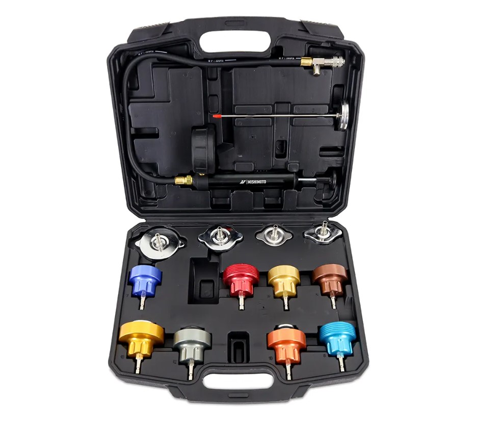 This 14-piece kit includes 8 color-coded aluminum adapters and 4 test caps to fit almost every vehicle. This tool kit is packaged in a durable plastic case that keeps your tools safe and organized and is backed by our Mishimoto Lifetime Warranty for a lifetime of service.