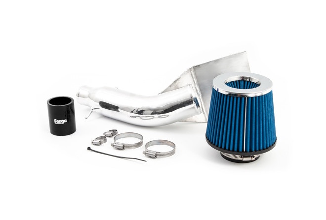 Bezpośredni zestaw dolotowy Forge Motorsport z polerowanego aluminium Bezpośredni zestaw dolotowy Forge Motorsport z polerowanego aluminium całkowicie zastępuje ograniczającą przepływ seryjną obudowę dolotu. Powietrze filtrowane jest przez stożkowy filtr Forge, który zapewnia wyraźny i sportowy dźwięk zasysanego powietrza. Zestaw posiada zintegrowaną osłonę termiczną, która chroni filtr przed gorącym powietrzem z komory silnika. Filtr montowany jest przy nadkolu, co umożliwia zasysanie chłodniejszego powietrza z przedniej części pojazdu. W komplecie znajdują się wszystkie elementy niezbędne do montażu, w tym wysokiej jakości opaski zaciskowe ze stali nierdzewnej (z gładkim wnętrzem odpowiednim do przewodów gumowych i silikonowych), komplet mocowań oraz szczegółowa instrukcja instalacji. Dostępna jest również wersja czarna: FO-FMINDFPA-N Kompatybilność pojazdu Alfa Romeo MiTo 170 KM MultiAir Quadrifoglio Verde Fiat Punto Evo (2010–2015) Abarth Multiair Kolor: czarny