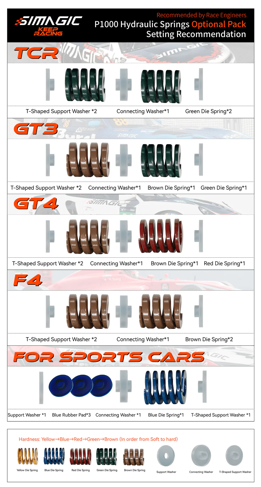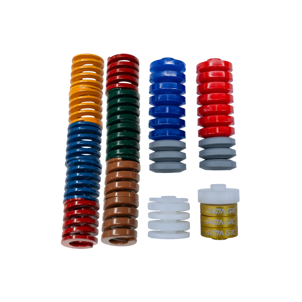 Zestaw elastomerów i sprężyn do hydraulicznego hamulca P1000/P1000i Zestaw SIMAGIC P-ORP(H) to dodatkowy komplet elastomerów oraz sprężyn, przeznaczony specjalnie do hydraulicznego hamulca w pedalboxach P1000 i P1000i. Pozwala precyzyjnie dostroić charakterystykę hamowania – od miękkiego i progresywnego po twardy, wyścigowy „bite point”. Pełna personalizacja hamulca hydraulicznego Zestaw umożliwia dostosowanie: sztywności hamulca, progresji nacisku, punktu zadziałania („bite point”), końcowej twardości hamowania. Idealny zarówno do długich wyścigów GT, jak i precyzyjnych symulacji formuły, gdzie odczucie hamulca ma kluczowe znaczenie. Materiały o wysokiej trwałości Komplet zawiera elastomery o różnych twardościach oraz specjalnie dobrane sprężyny, aby odwzorować zachowanie hamulców hydraulicznych przy dużych siłach i częstych cyklach obciążenia. Kompatybilność P1000 P1000i Hydrauliczne moduły hamulca P-HYS / P-HYSi Montaż Plug & Play Niekompatybilne z: Standardowym (niehydraulicznym) hamulcem P1000/P1000i Mechanicznym zestawem elastomerów P-ORP (wersja bez H) Zestaw przeznaczony jest wyłącznie do wersji hamulca hydraulicznego.