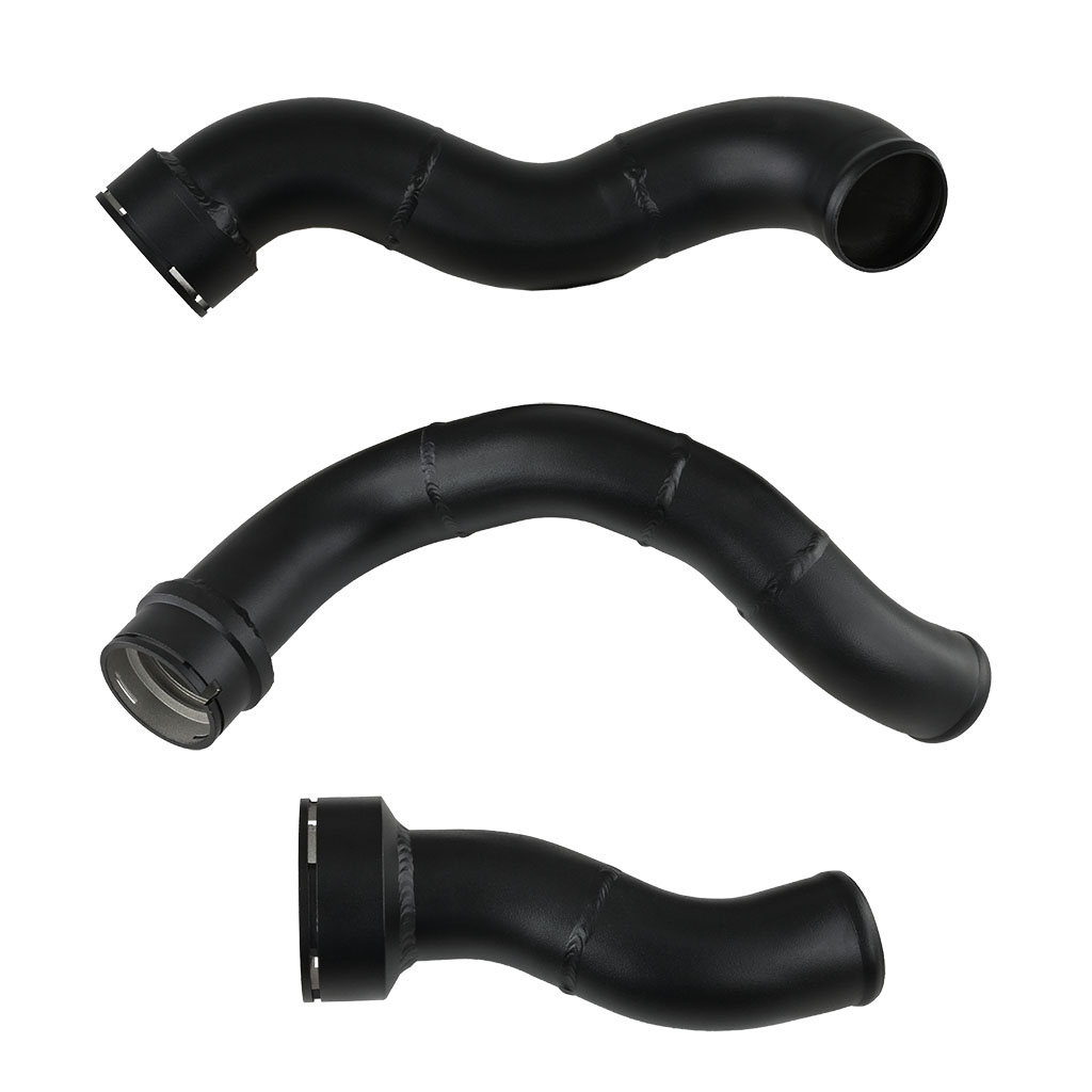 Zestaw przewodów Charge Pipe i Boost Pipe FMIC.EU Mini Cooper S F55 F56 F57 BMW X1 F48 F47 Zestaw przewodów dolotowych Charge pipe i Boost Pipe. Średnica wewnętrzna przewodów jest powiększona w porównaniu do oryginalnej rury dolotowej. Dzięki czemu ograniczenie przepływu powietrza jest zminimalizowane. Wadliwy fabryczny element tworzy turbulencje powietrza i powoduje zmniejszenie przepływu i wydajności. Wykonany z tworzywa sztucznego ulega uszkodzeniu na flanszy mocującej lub pęka, został on zastąpiony rurami aluminiowymi co gwarantuje szczelność. Elementy łączą redukcje silikonowe z poczwórnym zbrojeniem o grubości ścianki 5mm. Zestaw został zaprojektowany również z myślą o entuzjastach tuningu – rury posiadają gniazda 1/8", które umożliwiają podłączenie systemu wtrysku metanolu teraz lub w przyszłości. - Przewody z aluminium 6061, zamiennik przewodu OEM. - Łączniki aluminiowe zastępują wadliwą rurę plastikową, która może ulec uszkodzeniu pod wpływem zwiększonego ciśnienia doładowania. - Powiększona średnica i gładki przepływ bez zwężeń pomaga zmniejszyć turbulencje i zmaksymalizować przepływ powietrza. - Wszystkie króćce przyłączeniowe obrabiane CNC Skład zestawu: -Aluminiowe łączniki pomalowane proszkowo na czarno: 2 szt. 51mm, 1sz. 63mm- gniazdo/ zatyczki na czujnik temperatury 1/8 npt -Redukcje silikonowe 63mm, 51mm -Obejmy nierdzewne 4szt. -Adapter aluminiowy Dedykowany do: BMW F45 11/2013- 05/2016, F46 07/2014- 05/2016 BMW X1 F48 11/2014- 06/2016, F49 11/2014- 05/2016 MINI F55 09/2013- 05/2016, F56 04/2013- 05/2016 MINI F54 11/2014- 05/2016, F57 1/2014- 05/2016