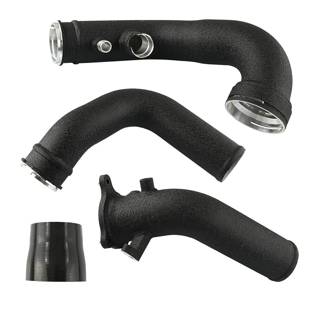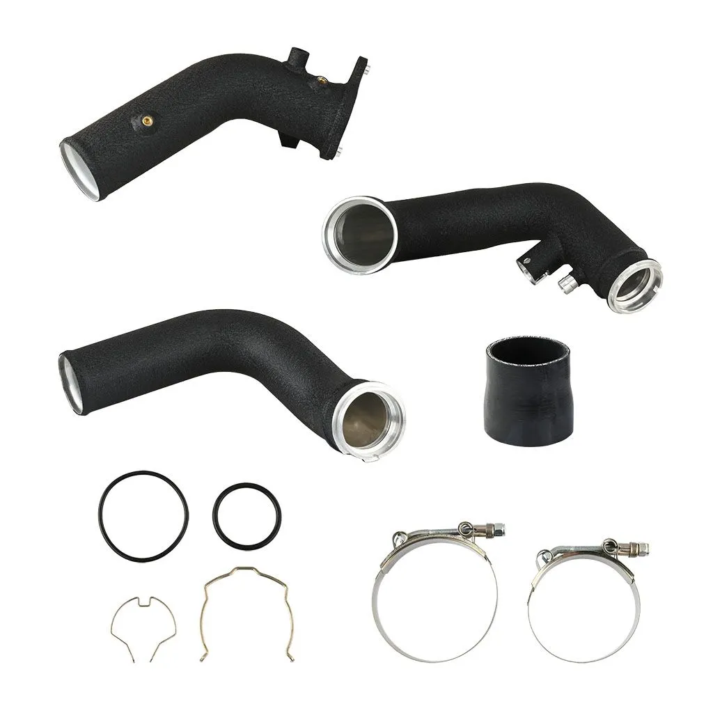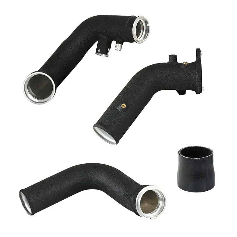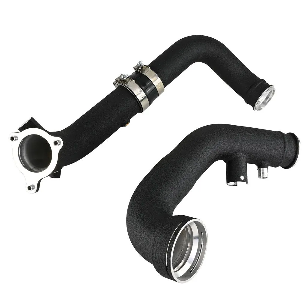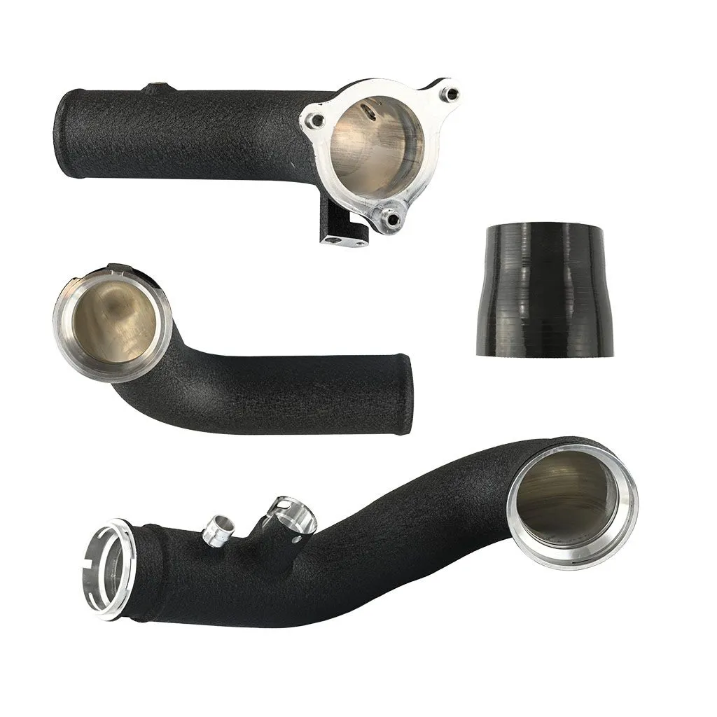Zestaw przewodów dolotowych Chargr pipe FMIC.EU BMW B46 B48 2.0T Zestaw przewodów dolotowych Charge pipe. Średnica wewnętrzna przewodu jest powiększona w porównaniu do oryginalnej rury dolotowej. Dzięki czemu ograniczenie przepływu powietrza jest zminimalizowane. Wadliwy fabryczny element tworzy turbulencje powietrza i powoduje zmniejszenie przepływu i wydajności. Wykonany z tworzywa sztucznego ulega uszkodzeniu na flanszy mocującej lub pęka, został zastąpiony rurami aluminiowymi co gwarantuje szczelność. Elementy łączy redukcja silikonowa z poczwórnym zbrojeniem o grubości ścianki 5mm. - Przewody z aluminium 6061, zamiennik przewodu OEM. - Dwa gniazda 1/8" NPT do wtrysku metanolu lub nitro - Łączniki aluminiowe zastępują wadliwą rurę plastikową, która może ulec uszkodzeniu pod wpływem zwiększonego ciśnienia doładowania. - Powiększona średnica i gładki przepływ bez zwężeń pomaga zmniejszyć turbulencje i zmaksymalizować przepływ do powietrza. - Wszystkie króćce przyłączeniowe obrabiane CNC Skład zestawu: Aluminiowe łączniki pomalowane proszkowo na czarno Redukcja silikonowa Obejmy nierdzewne O-ringi Dedykowany do: 1' F20 2015 —2016 1' F21 2015 —2016 2' F22 2015 —2017 2' F23 2015 —2017 3' F30 2014 —2016 3' F31 LCI 2014 —2016 3' F34 GT 2015 —2016 4' F32 2015 —2017 4' F33 2015 —2017 4' F36 2015 —2017 7’ G11 2014 —2016 7’ G12 2014 —2016