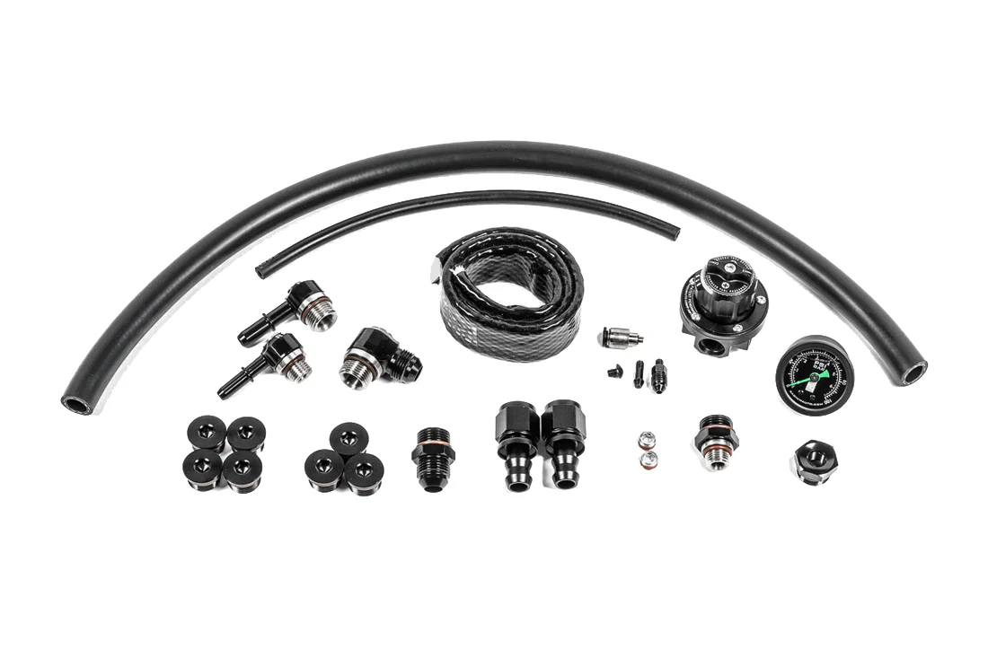 20-1062 Fuel Rail Plumbing Kit, GM Vortec 8100 L18 Big Block, 01–03 Zestaw zawiera wszystkie niezbędne elementy instalacyjne umożliwiające bezproblemowy montaż typu plug & play z listwami paliwowymi Radium Engineering 20-0862 w pojazdach z lat 2001–2003 wyposażonych w układ paliwowy typu return (z powrotem paliwa). Szybkozłączka SAE umożliwia bezpośrednie podłączenie do fabrycznego przewodu zasilającego. Przewód paliwowy typu crossover 8AN poprowadzony jest z tyłu silnika i łączy obie listwy paliwowe. Manometr ciśnienia paliwa oraz regulowany regulator ciśnienia montowane są bezpośrednio na lewej (LH) listwie paliwowej. Fabryczna szybkozłączka powrotu paliwa SAE podłącza się bezpośrednio do wyjścia regulatora. Wszystkie niewykorzystane porty są zaślepione dołączonymi korkami 8AN ORB. Zestaw jest kompletny i nie wymaga dodatkowych elementów. Zawartość zestawu Zestaw instalacyjny listwy paliwowej 20-1062 GM Vortec 8100 L18 Big Block (01–03) Manometr ciśnienia paliwa 0–100 psi Regulator ciśnienia paliwa do montażu bezpośredniego Przewód podciśnienia 5/32″ Przewód EFI 1/2″ Rękaw izolacji termicznej Złączka 8AN ORB do 1/8″ NPT Korek 8AN ORB (7 szt.) Złączka 8AN ORB na 8AN męska Korek 1/8″ NPT (2 szt.) Końcówka węża Pushlok (2 szt.) Obrotowa złączka 8AN ORB na 6AN ORB Obrotowa złączka 6AN ORB na 5/16″ SAE Obrotowa złączka 8AN ORB na 8AN męska Obrotowa złączka 8AN ORB na 3/8″ SAE