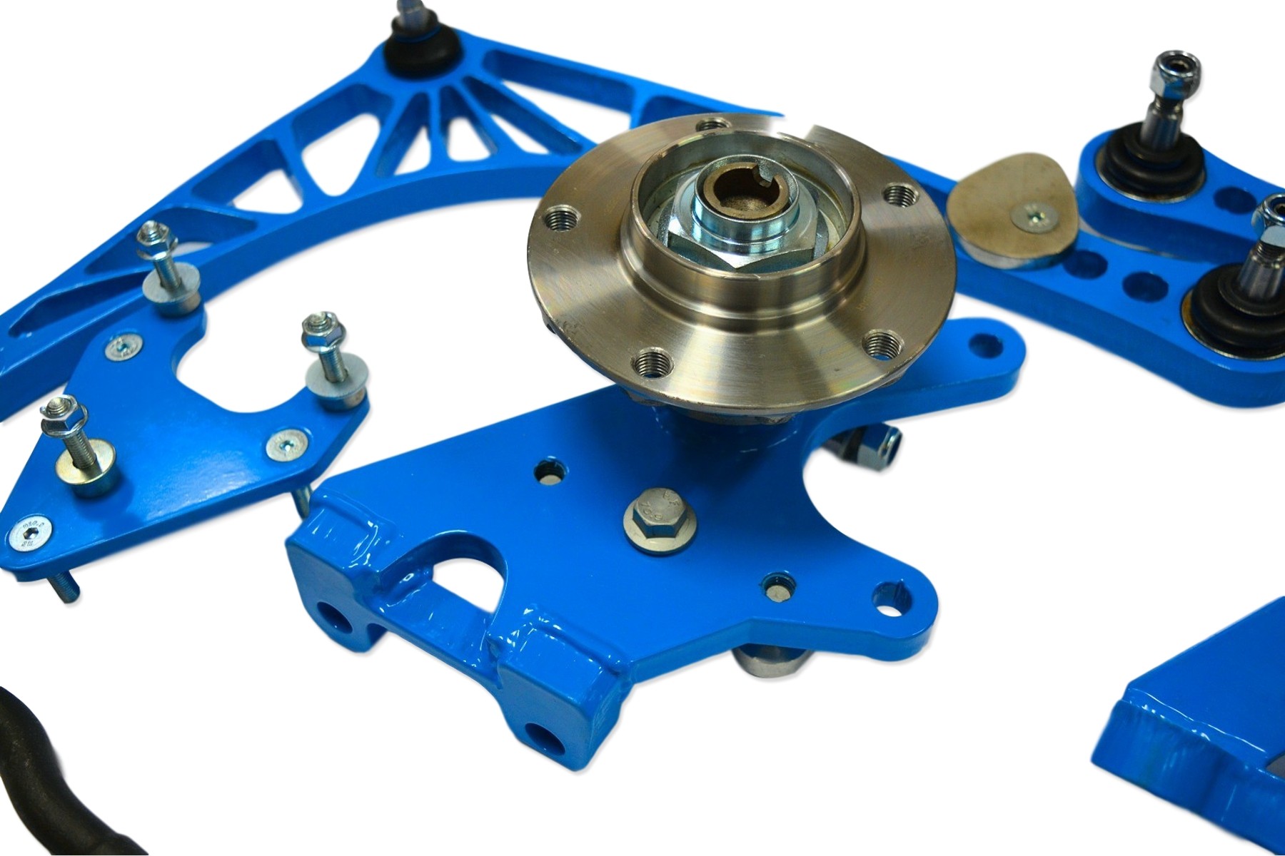 Zawieszenie CLM to zestaw do driftu będący efektem 2-letniej pracy i eksperymentów z przednim zawieszeniem BMW E36. Zawieszenia zaprojektowane przez COELMOTORSPORT wykonane metodą CNC (cięcie laserowe, toczenie, frezowanie, hartowanie, utwardzanie) do BMW E36. Mogą zostać zastosowane także w BMW E30 i E46 z amortyzatorami od modelu E36. Zestaw zaprojektowany został w środowisku 3D a następnie przeszedł wielokrotne testy na torach w Polce i Europie. Produkt zaprojektowany i wyprodukowany w Polsce. Całkowicie i permanentnie usunięta fabryczna korekcja Ackerman'a. Bardzo duży kąt skrętu wynoszący do 70 stopni (+-5 w zależności od zastosowanych elementów oraz karoserii). Zestaw zaprojektowany tak aby koła przednie pracowały równolegle w całym zakresie skrętu. Rozbieżność skrętu kół do 40 stopni nie przekracza 15 minut (1/4 stopnia) - co jest kompletnie nieosiągalne na seryjnych spawanych zwrotnicach. Zwrotnice całkowicie od nowa zaprojektowane w środowisku CAD 3D, wykonane na nowoczesnych maszynach i przez wykwalifikowanych, certyfikowanych fachowców. Zwrotnice redukują tzw. bump-steering poprzez przywrócenie nominalnej (fabrycznej) pozycji wahacza w aucie mocno obniżonym. Zwrotnice realnie obniżają roll-center poprzez przesunięcie w górę punktu mocowania koła. Zwrotnice poszerzają zawieszenie o dodatkowe 3 cm - dzięki temu nie ma konieczności stosowania dodatkowych dystansów pod koła, a co za tym idzie znacznie redukują masę nieresorowaną. Zwrotnice przystosowane do wzmocnionych końcówek drążków od BMW E46. Wahacze wykonane ze stali konstrukcyjnej, cięte wyprecyzyjnie metodą CNC. Relokatory górnego mocowania amortyzatora wykonane ze stopów aluminium. W zestawie komplet nowych wzmacnianych śrub o twardości 10,9. WAŻNE - Do wszystkich modeli skrętu wymagane jest stosowanie amortyzatorów z dolnym mocowaniem od modelu E36. W cenie zawarte są dwie sztuki zwrotnic z łożyskami (piastami), z kompletem wzmacnianych śrub i aluminiowych podkładek pod amortyzatory, wahacze ze sworzniami, mocowaniami do łączników stabilizatora i ogranicznikami skrętu oraz relokatory górnego mocowania amortyzatora. Jest to JEDYNY tego typu produkt na rynku. Wszystkie elementy zestawu CLM posiadają specjalną GWARANCJĘ, która umożliwia nieodpłatną wymianę uszkodzonego elementu na nowy (po odesłaniu uszkodzonego elementu do producenta) bez względu na przyczynę usterki. GWARANCJA obejmuje jednorazową wymianę każdego z uszkodzonych elementów. GWARANCJA nie dotyczy części zużywalnych takich jak łożyska, sworznie, drążki i końcówki.