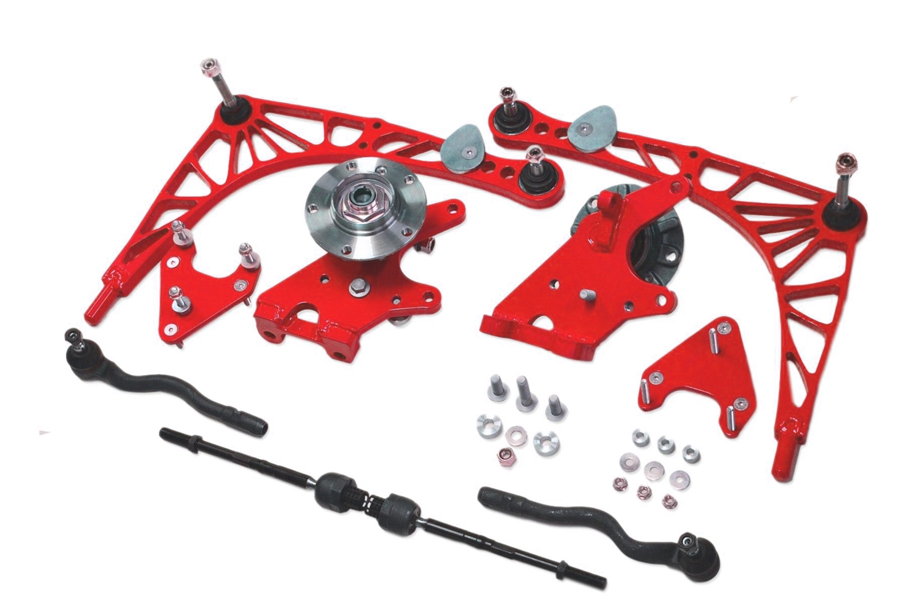 Zawieszenie CLM to zestaw do driftu będący efektem 2-letniej pracy i eksperymentów z przednim zawieszeniem BMW E46. Zawieszenia zaprojektowane przez COELMOTORSPORT wykonane metodą CNC (cięcie laserowe, toczenie, frezowanie, hartowanie, utwardzanie) do BMW E46. Mogą zostać zastosowane także w BMW E36 i E30 z amortyzatorami od modelu E36. Zestaw zaprojektowany został w środowisku 3D a następnie przeszedł wielokrotne testy na torach w Polce i Europie. Produkt zaprojektowany i wyprodukowany w Polsce. Całkowicie i permanentnie usunięta fabryczna korekcja Ackerman'a. Bardzo duży kąt skrętu wynoszący do 70 stopni (+-5 w zależności od zastosowanych elementów oraz karoserii). Zestaw zaprojektowany tak aby koła przednie pracowały równolegle w całym zakresie skrętu. Rozbieżność skrętu kół do 40 stopni nie przekracza 15 minut (1/4 stopnia) - co jest kompletnie nieosiągalne na seryjnych spawanych zwrotnicach. Zwrotnice całkowicie od nowa zaprojektowane w środowisku CAD 3D, wykonane na nowoczesnych maszynach i przez wykwalifikowanych, certyfikowanych fachowców. Zwrotnice redukują tzw. bump-steering poprzez przywrócenie nominalnej (fabrycznej) pozycji wahacza w aucie mocno obniżonym. Zwrotnice realnie obniżają roll-center poprzez przesunięcie w górę punktu mocowania koła. Zwrotnice poszerzają zawieszenie o dodatkowe 3 cm - dzięki temu nie ma konieczności stosowania dodatkowych dystansów pod koła, a co za tym idzie znacznie redukują masę nieresorowaną. Zwrotnice przystosowane do wzmocnionych końcówek drążków od BMW E46. Wahacze wykonane ze stali konstrukcyjnej, cięte wyprecyzyjnie metodą CNC. Relokatory górnego mocowania amortyzatora wykonane ze stopów aluminium. W zestawie komplet nowych wzmacnianych śrub o twardości 10,9. WAŻNE - Do wszystkich modeli skrętu wymagane jest stosowanie amortyzatorów z dolnym mocowaniem od modelu E36. W cenie zawarte są dwie sztuki zwrotnic z łożyskami (piastami), z kompletem wzmacnianych śrub i aluminiowych podkładek pod amortyzatory, wahacze ze sworzniami, mocowaniami do łączników stabilizatora i ogranicznikami skrętu oraz relokatory górnego mocowania amortyzatora. Jest to JEDYNY tego typu produkt na rynku. Wszystkie elementy zestawu CLM posiadają specjalną GWARANCJĘ, która umożliwia nieodpłatną wymianę uszkodzonego elementu na nowy (po odesłaniu uszkodzonego elementu do producenta) bez względu na przyczynę usterki. GWARANCJA obejmuje jednorazową wymianę każdego z uszkodzonych elementów. GWARANCJA nie dotyczy części zużywalnych takich jak łożyska, sworznie, drążki i końcówki.