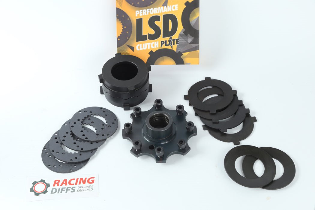 BMW 168mm Limited Slip Differential: Restore and Elevate Performance Specifically designed for most 4-cylinder BMW models before 1999, the small-case (168mm) Limited Slip Differential has been a cornerstone for models like the E21, E30, E36, and Z3. Choose Your Pack: Service or Enhanced Stage Kits Service Pack: Return to that authentic differential feel with a 2-clutch set. Stage 1 - Track Pack: 2 clutch set featuring RacingDiffs' durable clutch plates, ensuring optimal grip and longevity. Precision-engineered billet steel cap. Ramp saver shim designed for prolonged differential health. Stage 2 - Race Pack: Aggressive 4-clutch set with RacingDiffs' enhanced clutch plates for a better performance curve. Pre-load shim set billet steel cap for superior strength and stability. Ramp saver shim and pre-load shim set for precise lock and improved handling. Stage 3 - Max Performance Pack: Aggressive 4-clutch set with RacingDiffs' premier clutch plates. Ultra-durable billet steel cap. Pre-load shim set multi-variation ramp set, allowing drivers to fine-tune differential behavior for optimal power distribution and road connection. To re-build your differential completely, you will need the Bearing & Oil seal set. OEM part numbers: 3314120380633-14-12-03-80633 14 12 03 80633.14.12.03.8063314120380333-14-12-03-80333 14 12 03 80333.14.12.03.8033314120380433-14-12-03-80433 14 12 03 80433.14.12.03.8043314120380533-14-12-03-80533 14 12 03 80533.14.12.03.8053314120415333-14-12-04-15333 14 12 04 15333.14.12.04.153