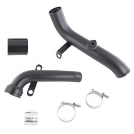 Zestaw Turbo Discharge Pipe FMIC.EU Audi TT VW Golf 2.0TSI Discharge Pipe to zestaw rur do tunignu układu dolotowego silnika. Jedna to rura wylotowa z turbiny o zwiększonej średnicy, która znacząco zmniejsza zawirowania oraz poprawia wydajność i działanie trubosprężarki, druga to rura do przepustnicy. Średnica wewnętrzna przewodów jest powiększona w porównaniu do oryginalnej rury dolotowej. Dzięki czemu ograniczenie przepływu powietrza jest zminimalizowane. Wadliwy fabryczny element tworzy turbulencje powietrza i powoduje zmniejszenie przepływu i wydajności. Wykonany z tworzywa sztucznego ulega uszkodzeniu na flanszy mocującej lub pęka, został zastąpiony rurami aluminiowymi co gwarantuje szczelność. Elementy łączy redukcja silikonowa z poczwórnym zbrojeniem o grubości ścianki 5mm. - Przewody z aluminium 6061, zamiennik przewodu OEM. - Łączniki aluminiowe zastępują wadliwą rurę plastikową, która może ulec uszkodzeniu pod wpływem zwiększonego ciśnienia doładowania. - Powiększona średnica i gładki przepływ bez zwężeń pomaga zmniejszyć turbulencje i zmaksymalizować przepływ do powietrza. - Wszystkie króćce przyłączeniowe obrabiane CNC Skład zestawu: -Aluminiowe łączniki pomalowane proszkowo na czarno 2szt. -Łącznik silikonowy -Obejmy nierdzewne 2szt. -Adapter Pasuje do: Pojazdów z silnikami 2.0 TSI CCTA / CBFA Audi TT MK2 (2009) 2.0 TSI Volkswagen Golf MK5 GTI (2009) 2.0 TSI Golf MK6 GTI (2010) 2.0 TSI Jetta MK5 (2009) 2.0 TSI Tiguan (2009) 2.0 TSI Scirocco (2009) 2.0 TSI Nie pasuje do Jetta 2013+