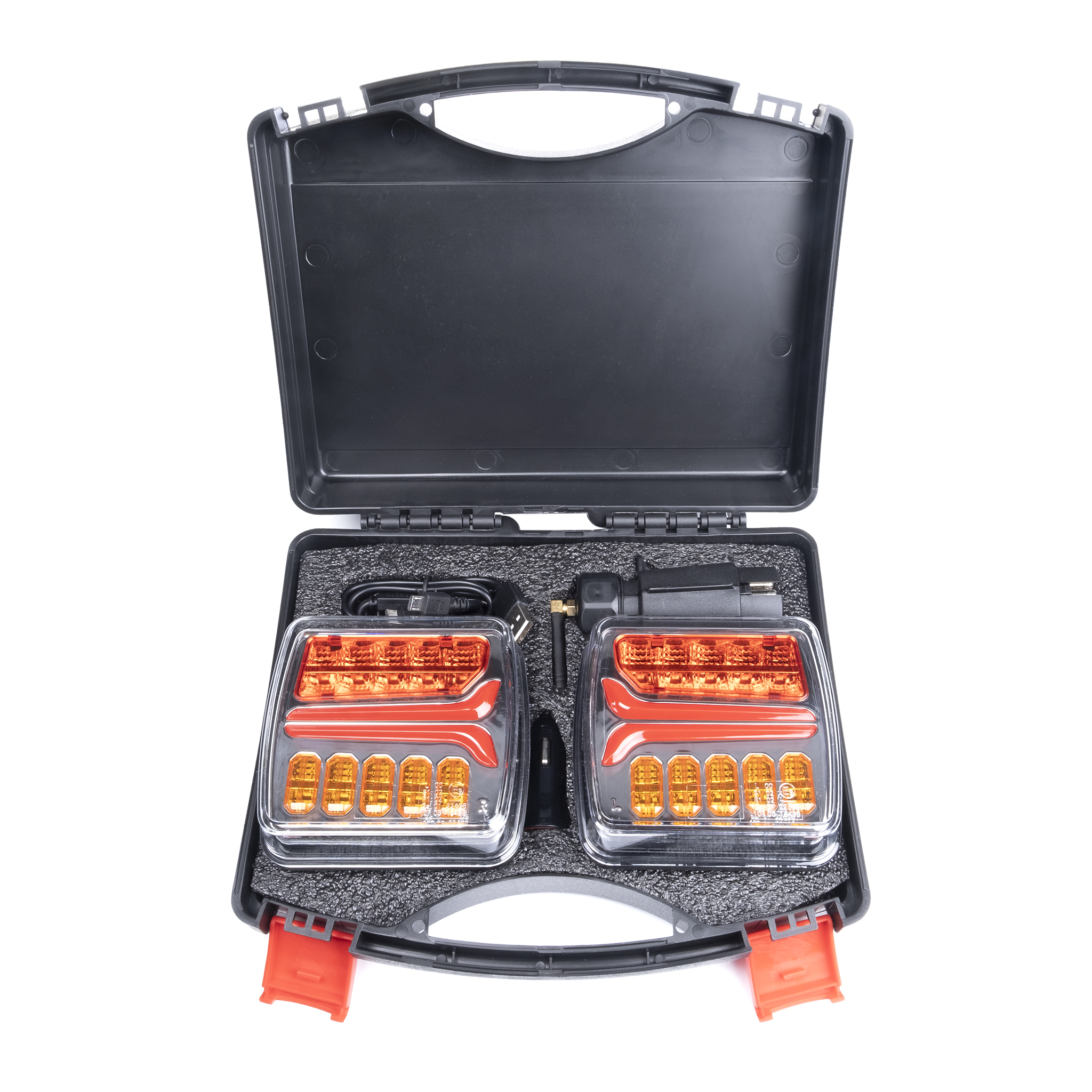 Purelux Trailer Light Kit – bezprzewodowy zestaw tylnych świateł LED do przyczep Purelux Trailer Light Kit to praktyczny zestaw bezprzewodowych tylnych świateł LED z magnetycznym mocowaniem, przeznaczony do przyczep, przyczep podłodziowych, naczep oraz innych zastosowań, w których szybki montaż i demontaż oświetlenia ma kluczowe znaczenie. Zestaw oferuje cztery funkcje świetlne: automatyczne światła pozycyjne, światła STOP, kierunkowskazy oraz oddzielne oświetlenie tablicy rejestracyjnej. Instalacja jest wyjątkowo prosta – dołączony nadajnik podłącza się bezpośrednio do 7-pinowego gniazda pojazdu, skąd odczytuje sygnały (np. kierunkowskazy czy hamowanie) i bezprzewodowo przekazuje je do lamp. Dzięki zasięgowi do 30 metrów zestaw sprawdzi się również przy dłuższych przyczepach. Magnetyczne mocowanie pozwala szybko zdjąć światła, np. podczas wodowania lub wyciągania łodzi z wody. Zestaw doskonale sprawdzi się także jako oświetlenie awaryjne, gdy standardowe światła przyczepy są niesprawne. Wbudowane akumulatory 2600 mAh zapewniają do 8 godzin pracy na jednym ładowaniu. Ładowanie odbywa się przez port Micro-USB, a w zestawie znajduje się zarówno kabel USB z dwiema końcówkami, jak i adapter do gniazda zapalniczki samochodowej. Czytelny wskaźnik naładowania umożliwia stałą kontrolę stanu baterii. Wytrzymała obudowa z tworzywa sztucznego oraz niemal niezniszczalna soczewka z poliwęglanu zapewniają trwałość, a klasa szczelności IP65 gwarantuje odporność na kurz i wodę. Całość dostarczana jest w praktycznej torbie transportowej. Zestaw działa w instalacjach 12 V.